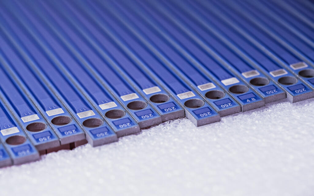 Film sealing bars and temperature controllers are relatively small but decisive and high-tech components in modern packaging machines. ROPEX Industrie-Elektronik GmbH manufactures these for the specific requirements of its customers. For example, they can fuse foils in fractions of a second to form a seam that is only a few millimetres wide and has a complex outline. In time periods barely longer than a blink of an eye, they are heated to a precisely controlled temperature and cooled down again. In this way, the most efficient systems seal far more than 100 packaging units per minute and sometimes combine several types of plastics or laminates.