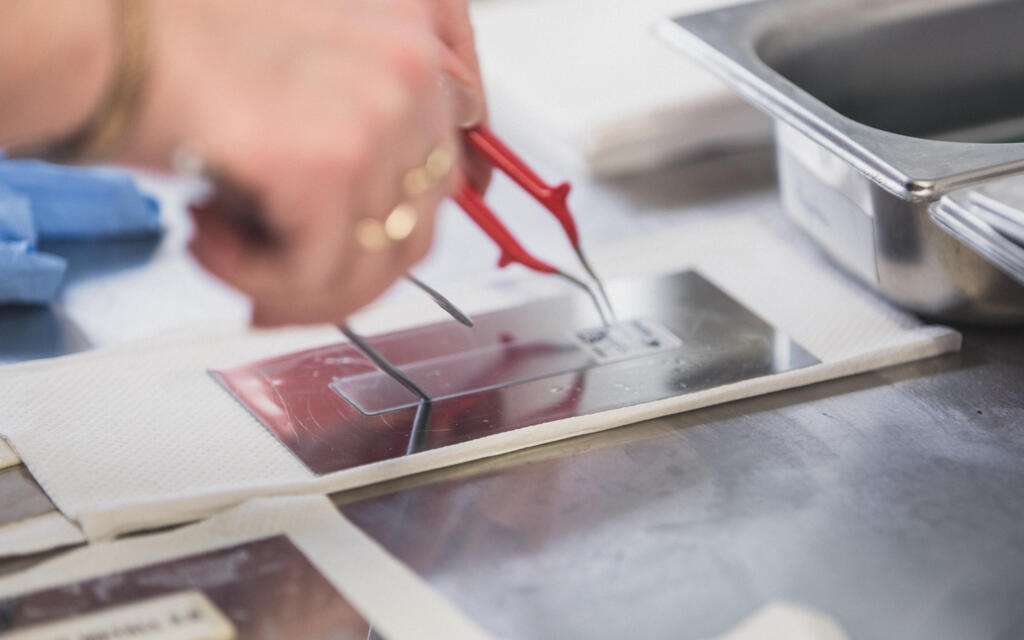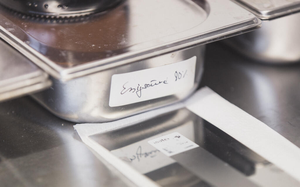 Die genauen Rezepturen der verwendeten Lacke, Kleber und Materialien sind bei der inotec Barcode Security GmbH gut gehütete Geheimnisse. Sie entstehen im Label-Kompetenz-Zentrum: Ein Labor direkt über der Fertigungshalle, in dem Jana Zemke kleine Proben verschiedenster Materialien testet.